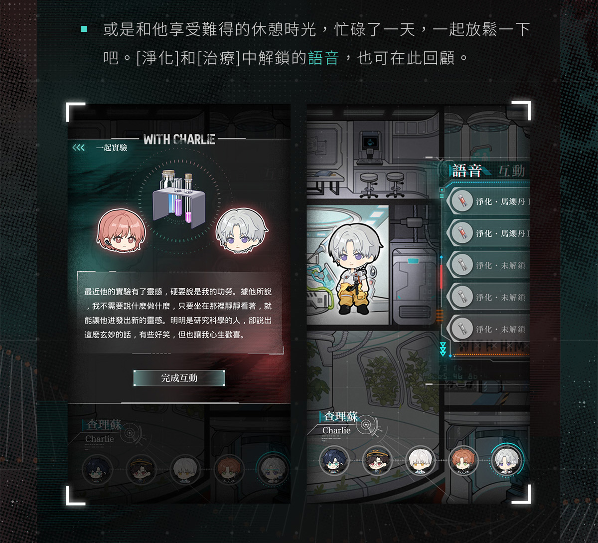蕭逸・末日戰紀、陸沉・星辰共枕、齊司禮・時空相約、查理蘇・心動解碼、夏鳴星・機械黎明