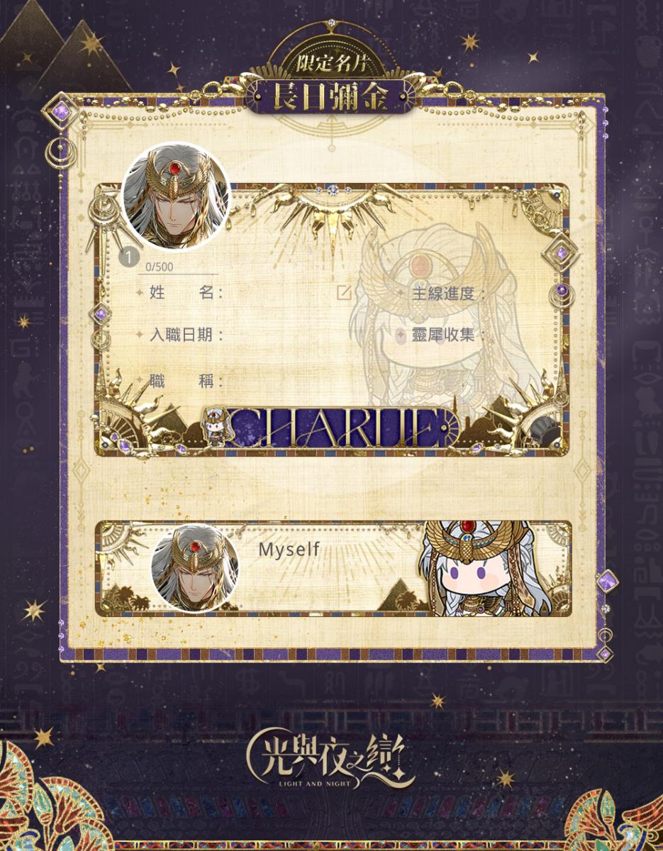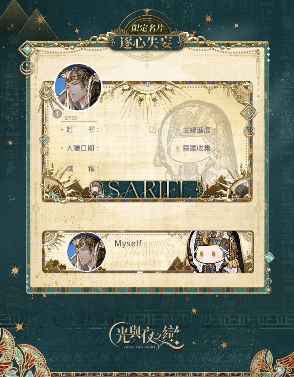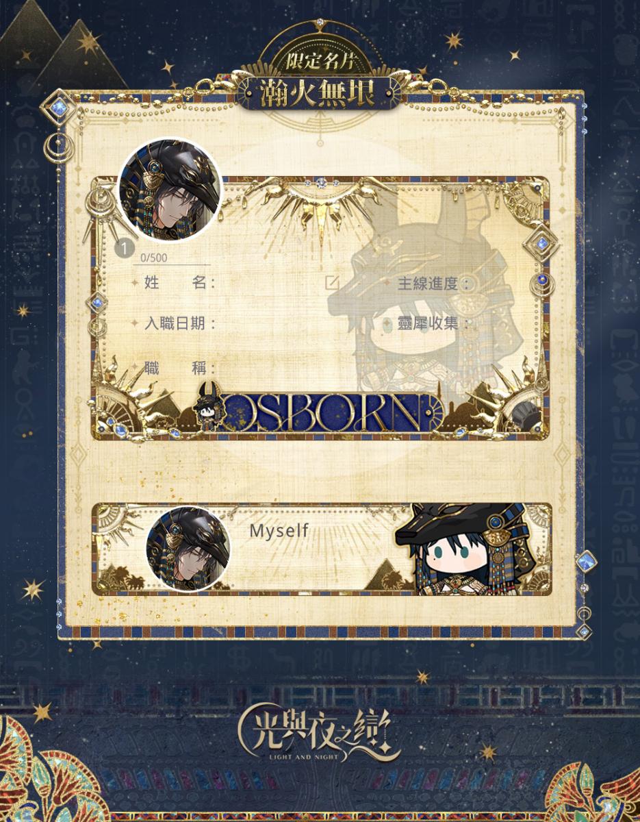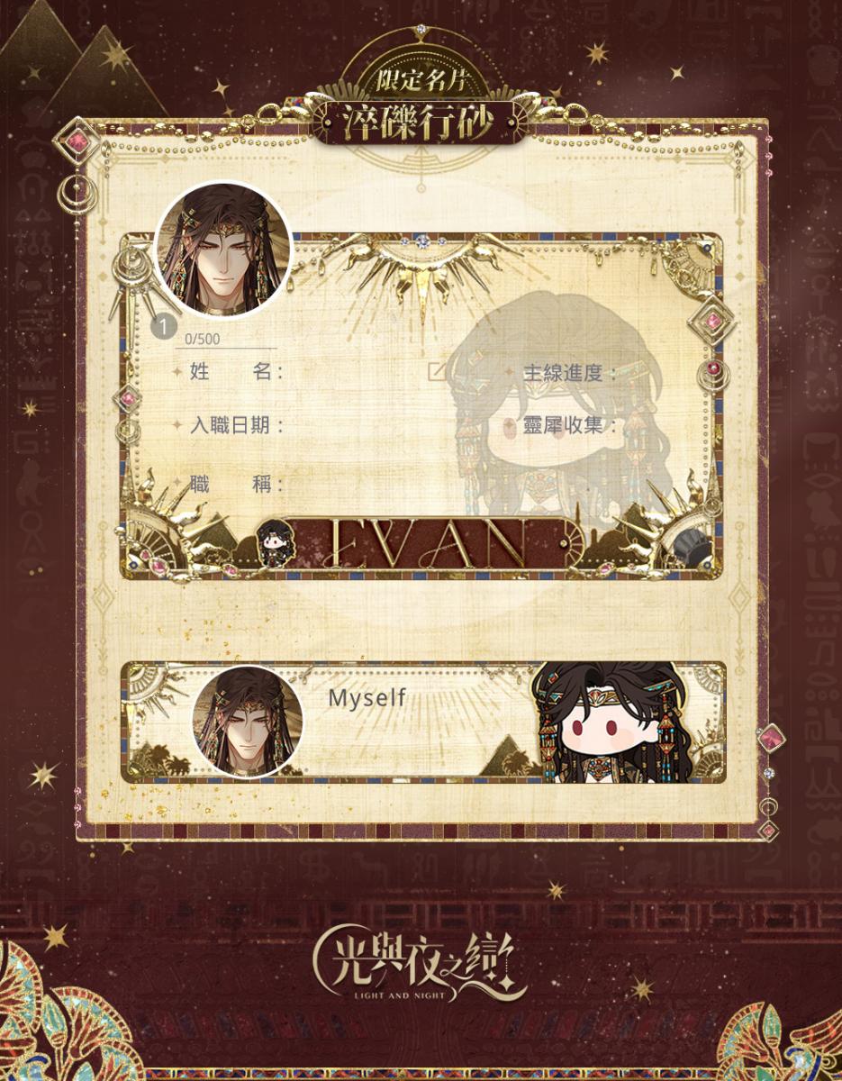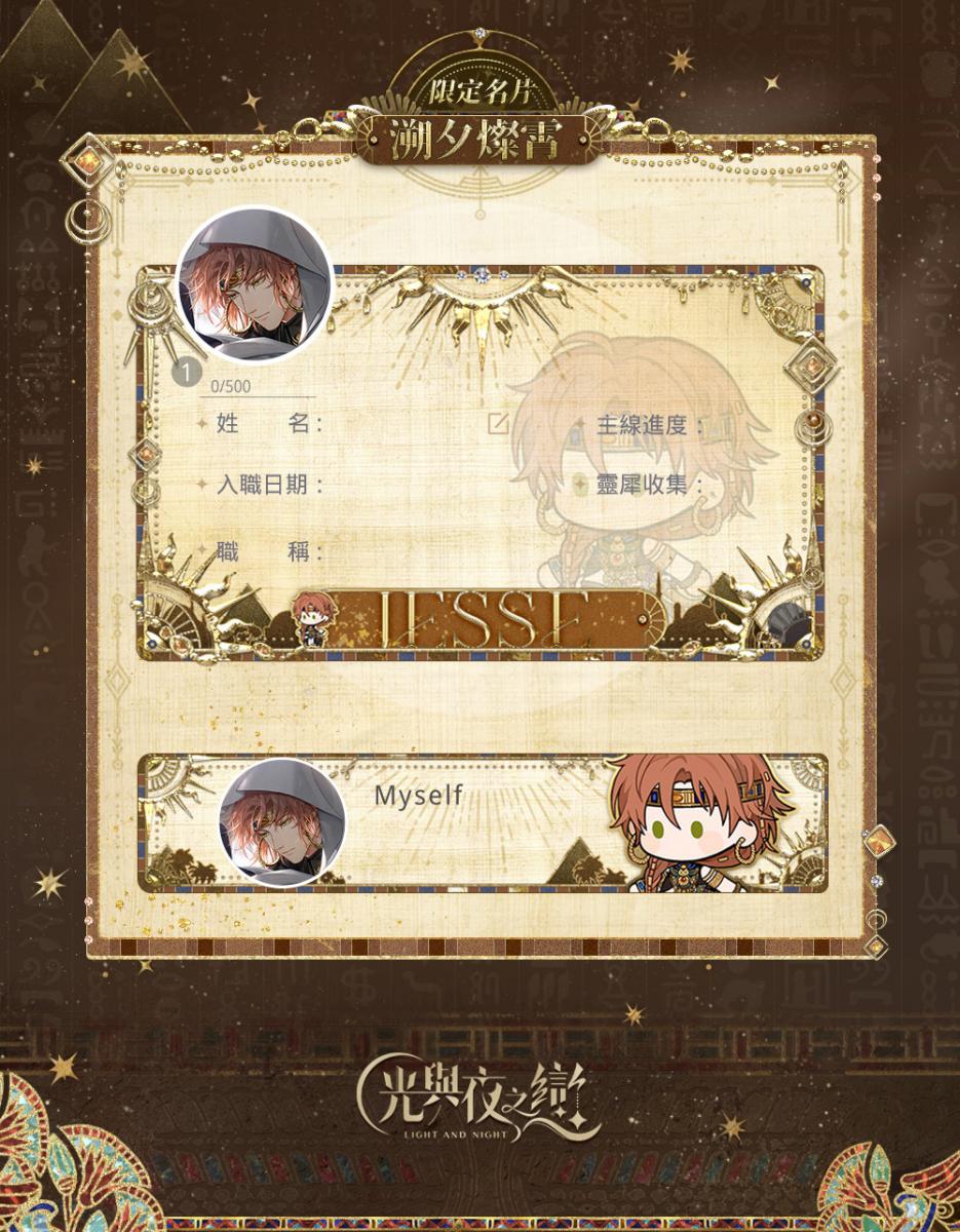 活動期間累計收信210次/240次/270次/320次/350次時,各可在限時計畫處領取[名片禮盒],打開後可隨機獲得以下任一限定名片獎勵:[瀚火無垠] [淬礫行砂] [逐心失妄] [長日彌金] [溯夕燦霄] (不會重複獲得)。