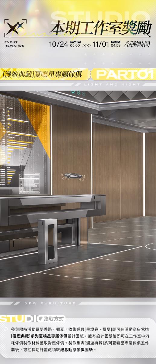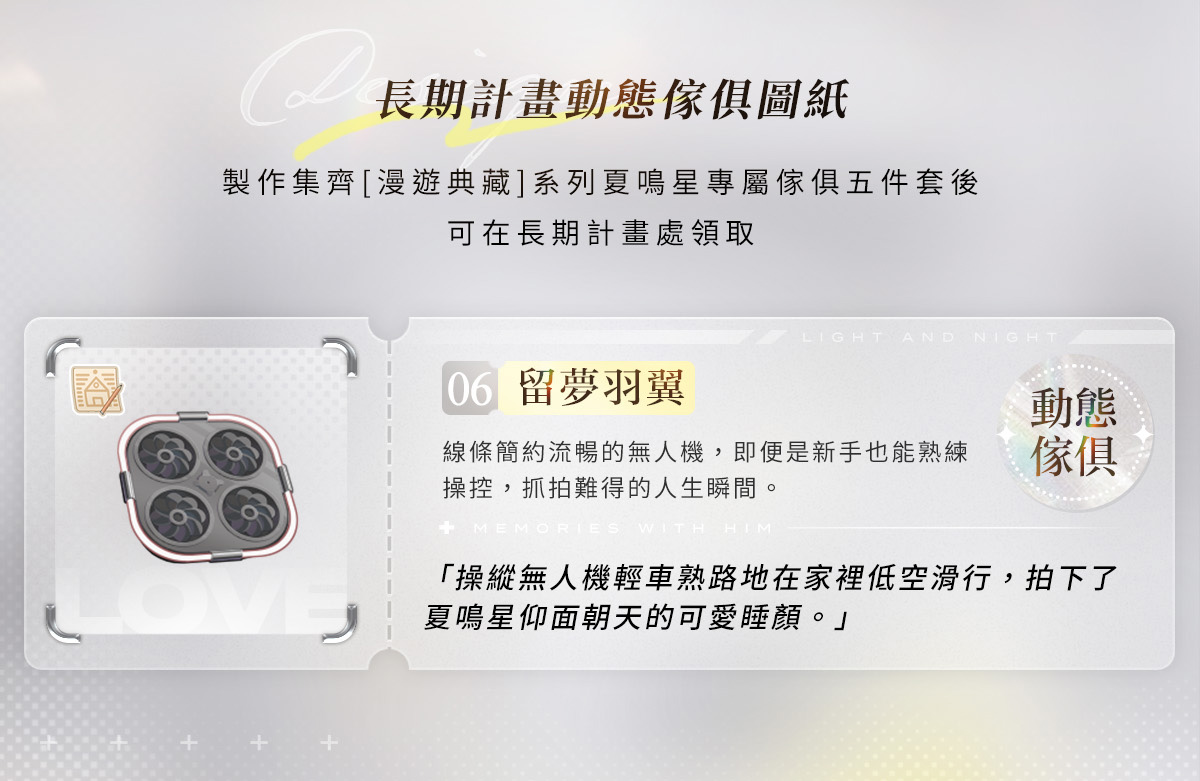 製作集齊[漫遊典藏]系列夏鳴星專屬傢俱五件套後,可在長期計畫處領取紀念動態傢俱圖紙。