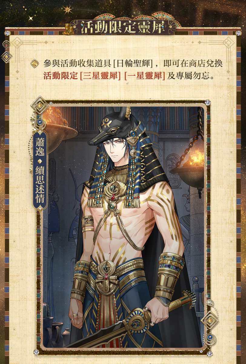 參與活動收集兌換道具[日輪聖輝],即可在商店兌換活動限定[三星靈犀][一星靈犀]及專屬勿忘。