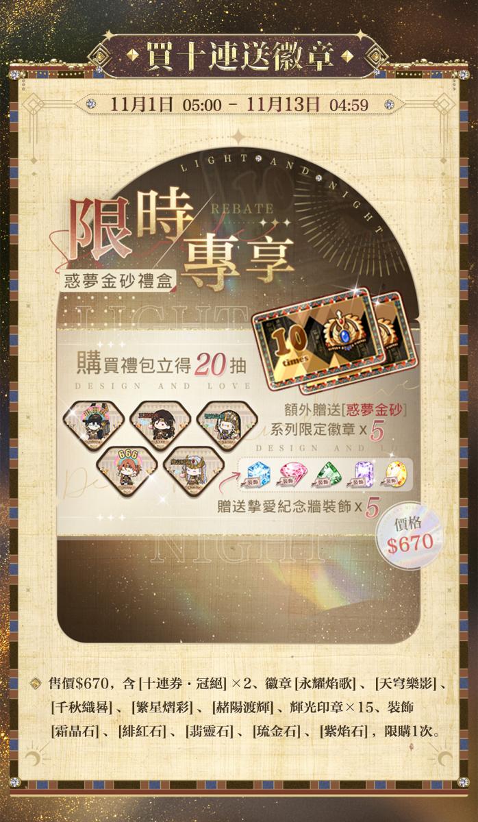 ✦ [惑夢金砂]買十連送徽章