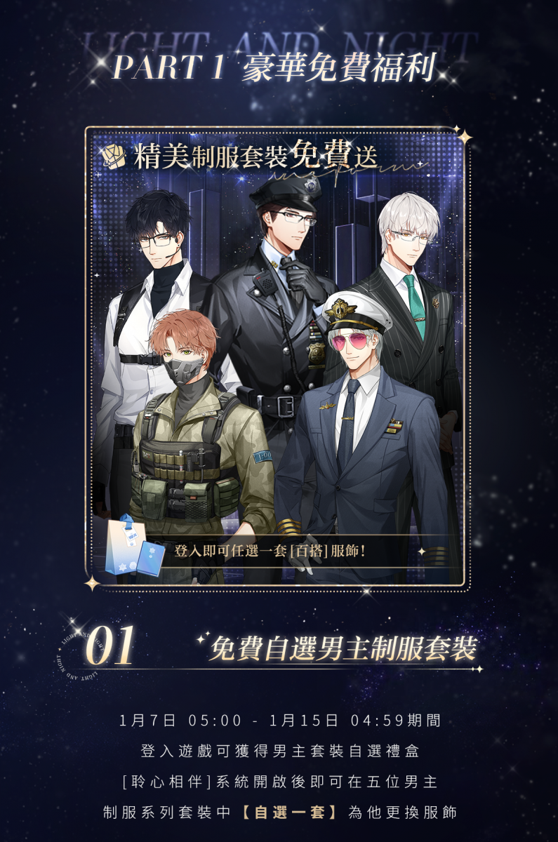 ✦ 免費自選[聆心相伴]男主制服套裝!