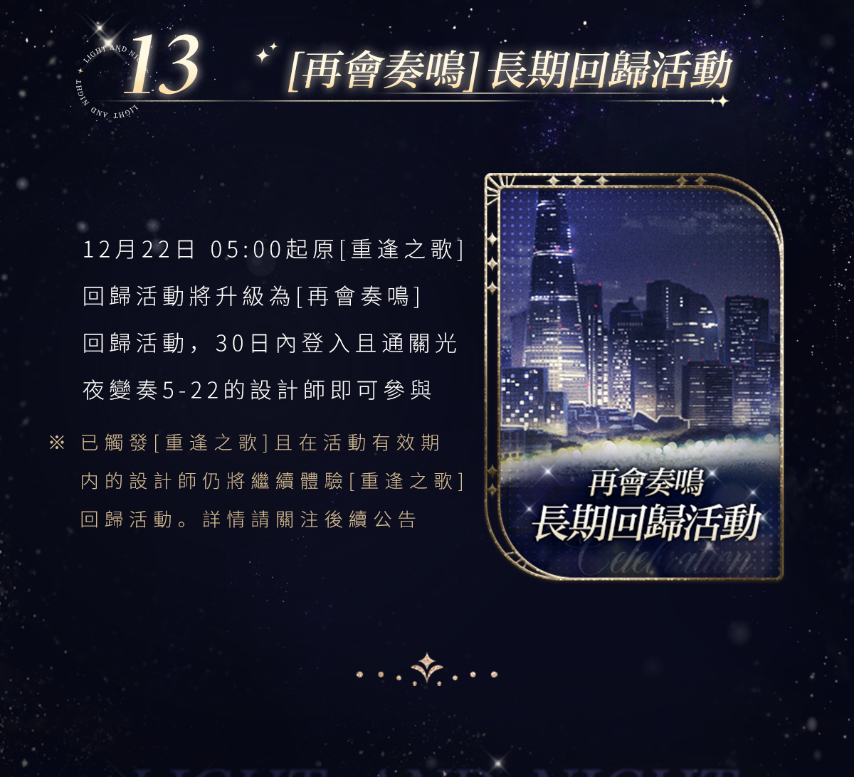 ✦ [再會奏鳴]長期回歸活動更新