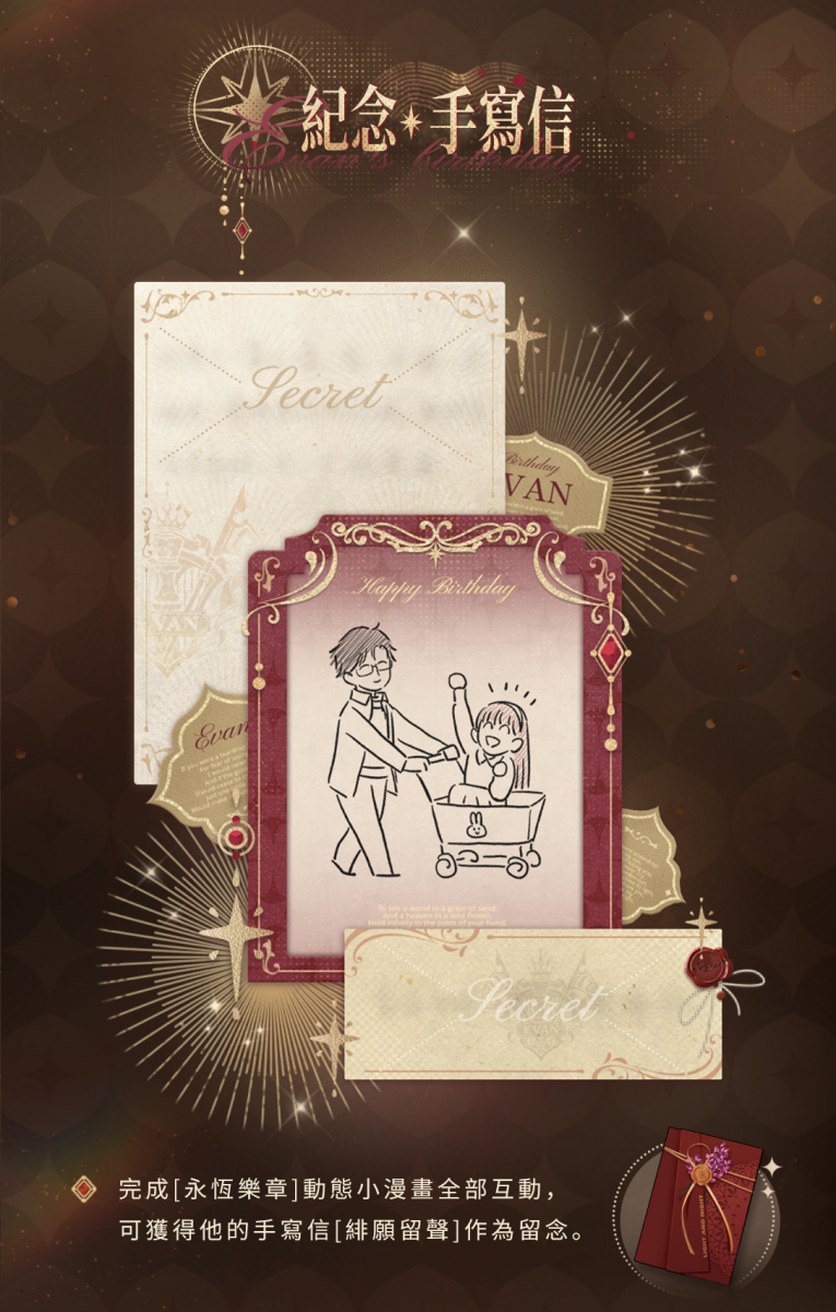完成[永恆樂章]動態小漫畫全部互動,可獲得他的手寫信[緋願留聲]做為留念。