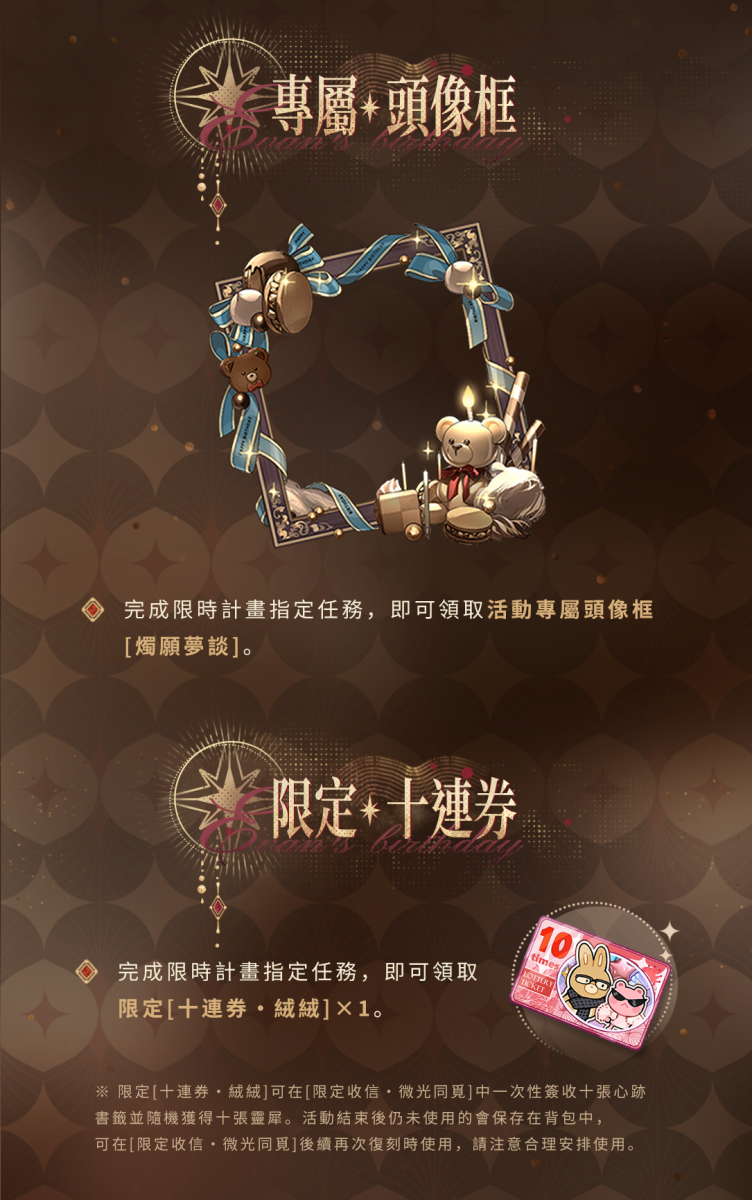 完成限時計畫指定任務,即可領取活動專屬頭像框[燭願夢談]。