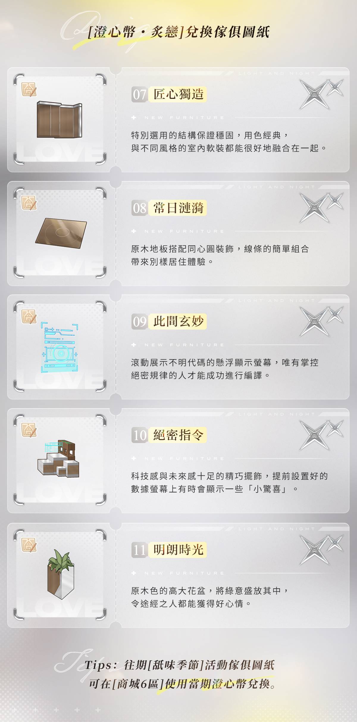 Tips:往期[舐味季節]活動傢俱圖紙可在[商城6區]使用當期澄心幣兌換。