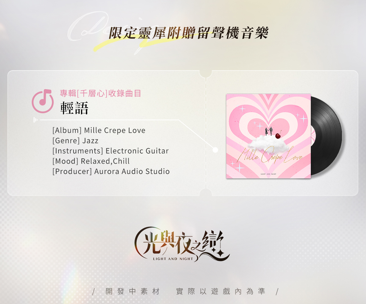 參與限時活動羈夢香遇・炙戀,獲得[6星]靈犀 蕭逸・炙戀 並達成一定培養條件後,即可在靈犀詳情介面左上角靈犀獎勵處領取附贈【限定傢俱圖紙】及【工作室留聲機音樂】。
