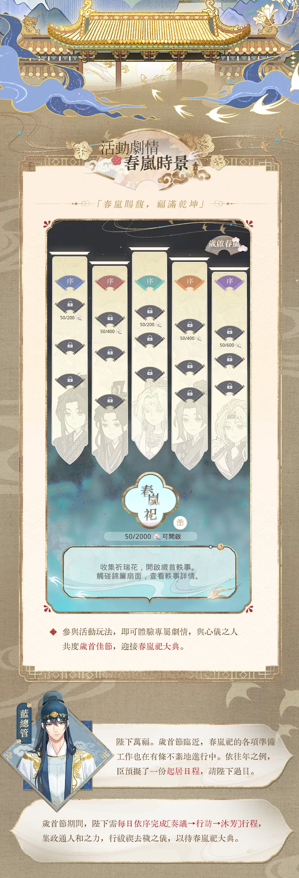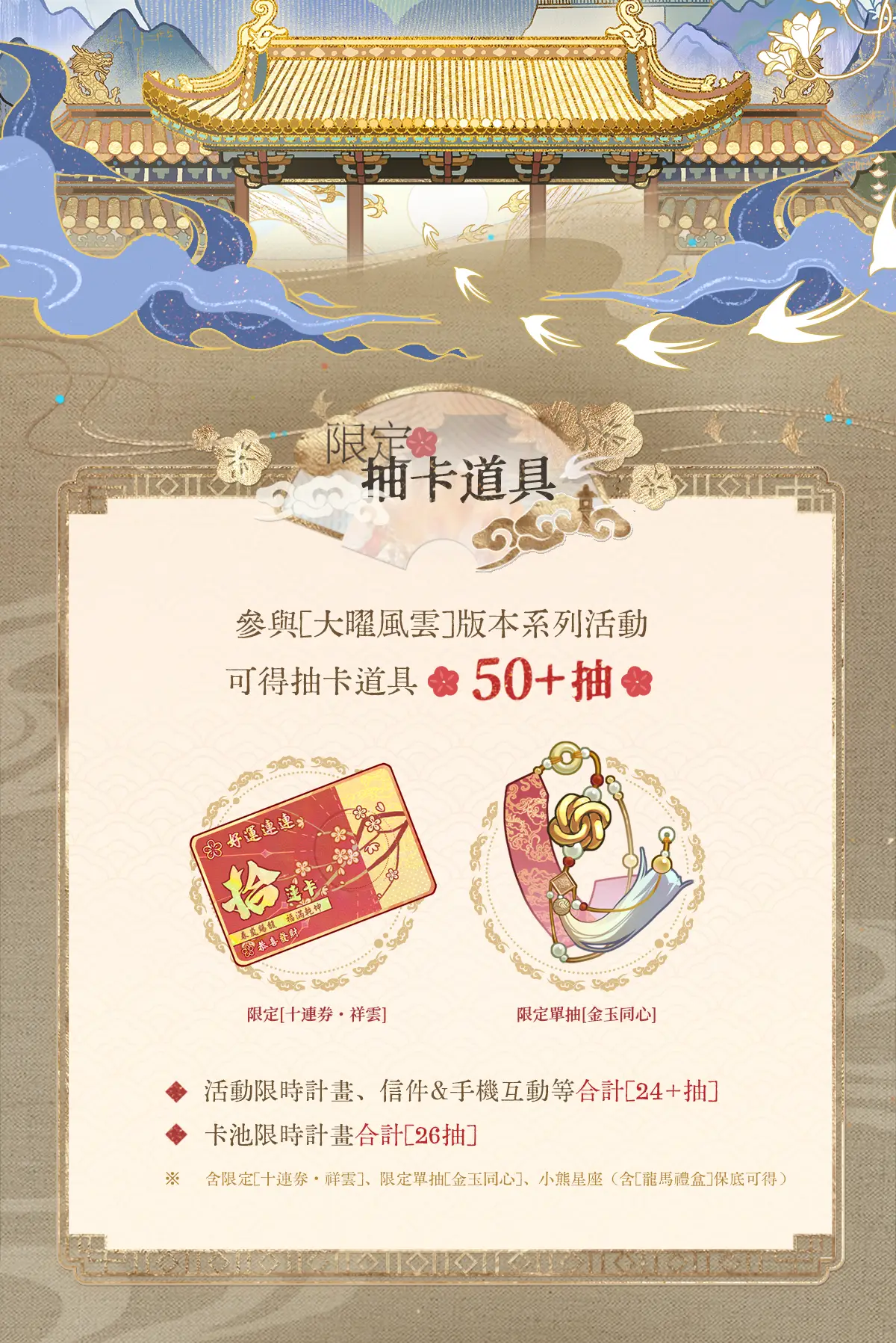 ⭐ 活動概要:參與活動「曜時祈春嵐」即可體驗限時活動劇情,獲取限定抽卡道具、活動限定靈犀、專屬稱號、頭像框等豐富獎勵。