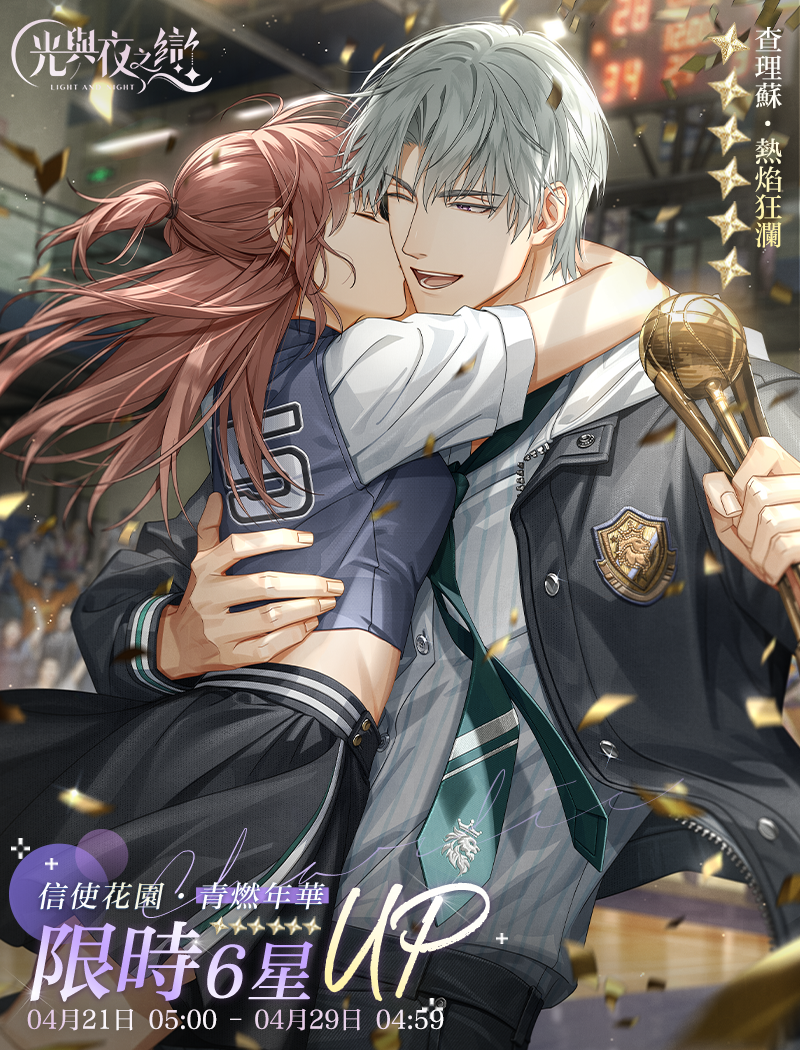 活動說明:熱血無限,青春狂瀾。與查理蘇一起重遊校園,在宜人春日中同拾青春的回憶。參與活動即可體驗專屬劇情,獲得活動限定 [3星]靈犀 查理蘇・青絢夢途 、紀念頭像、手寫信等獎勵。